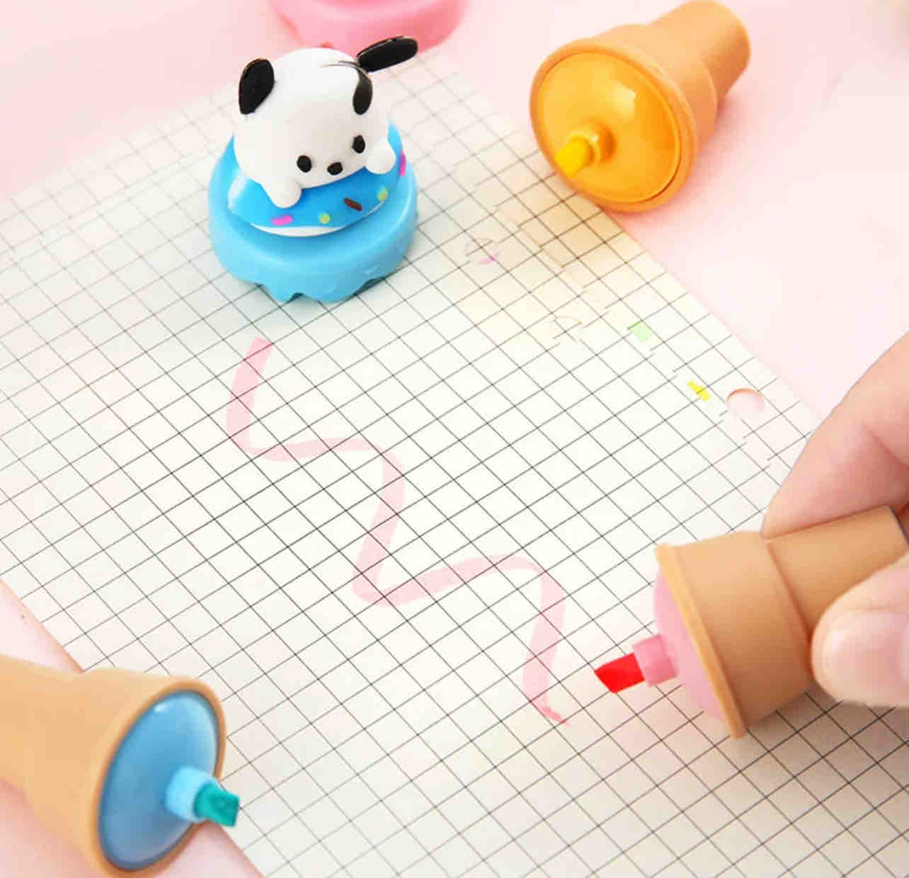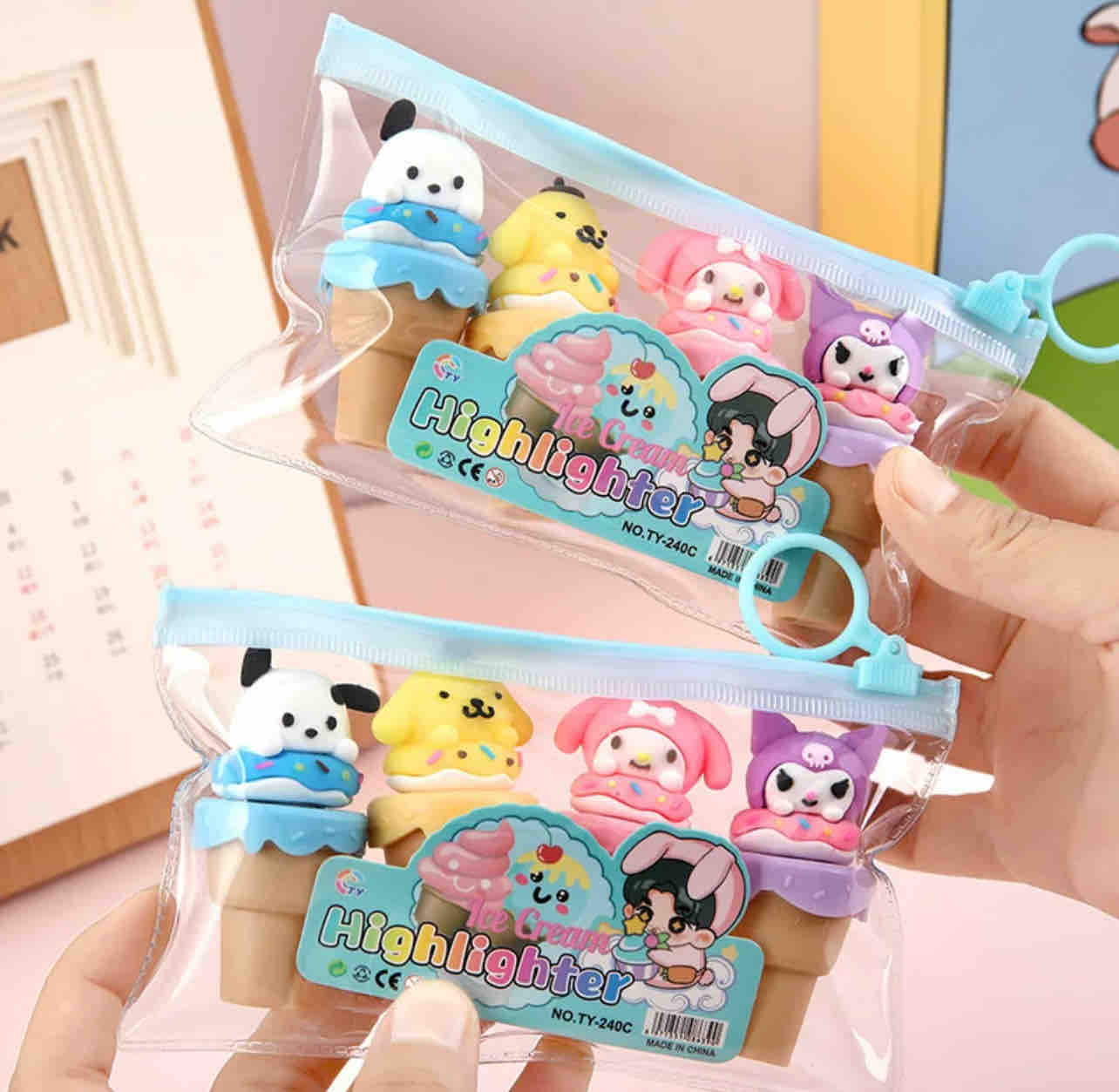 PAquete de resaltadores. diseño en forma de cono le da un toque único y atractivo, inspirado en el estilo adorable de Sanrio.
