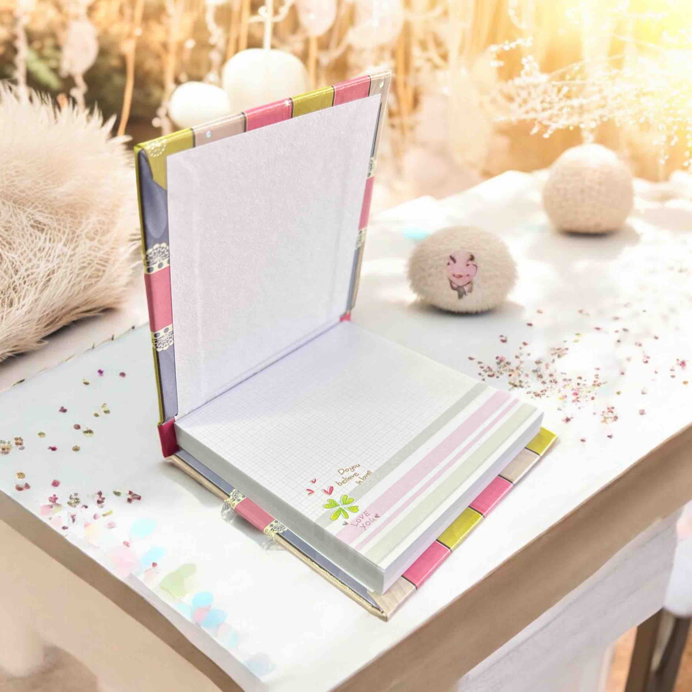 compacto y fácil de colocar en escritorios o espacios de trabajo, con hojas desprendibles para mayor comodidad.
